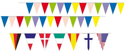 Wimpelkette Farbige Wimpel 18 x 36cm. Länge 12m